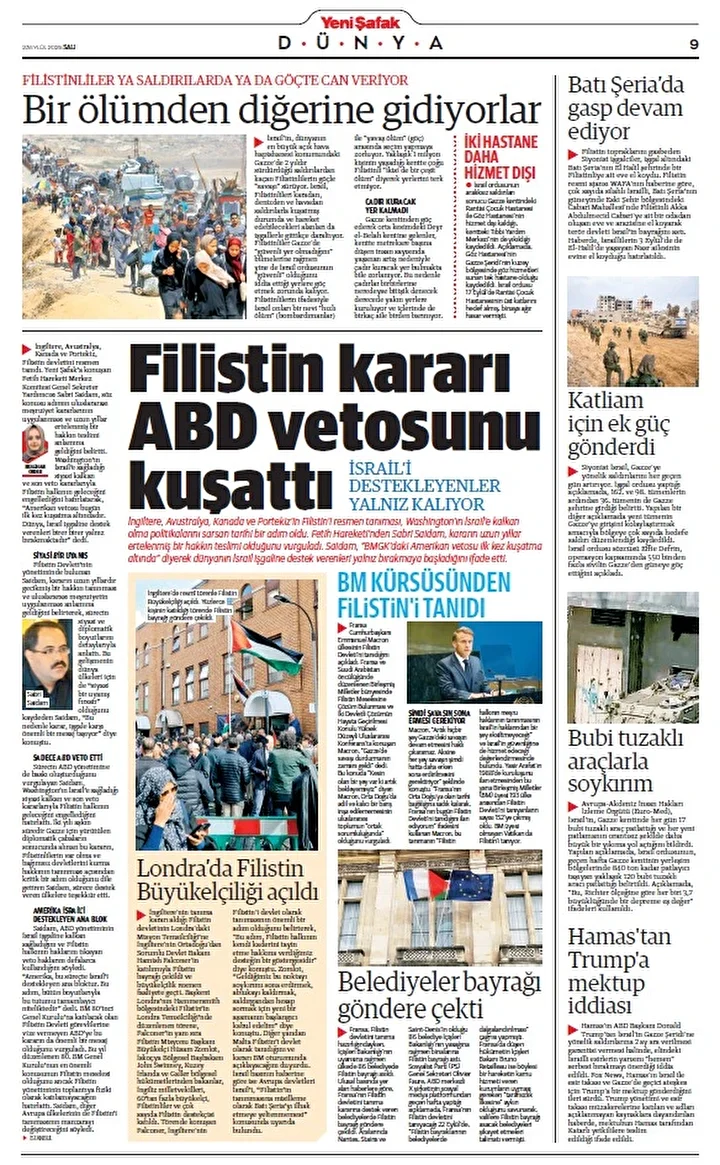 İngiltere, Avustralya, Kanada ve Portekiz’in Filistin’i resmen tanıması, Washington’ın İsrail’e kalkan olma politikalarını sarsan tarihi bir adım oldu. Fetih Hareketi’nden Sabri Saidam, kararın uzun yıllar ertelenmiş bir hakkın teslimi olduğunu vurguladı. Saidam, “BMGK’daki Amerikan vetosu ilk kez kuşatma altında” diyerek dünyanın İsrail işgaline destek verenleri yalnız bırakmaya başladığını ifade etti.