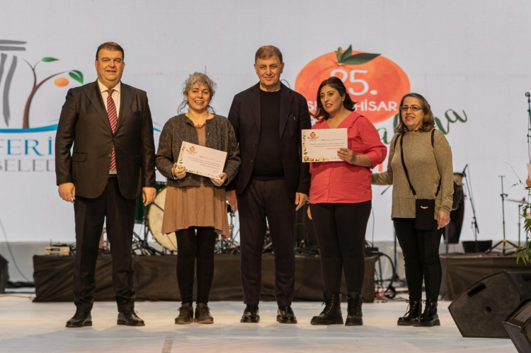 25. Seferihisar Mandalina Şenliği kapsamında düzenlenen Hediyelik Eşya Yarışması’nda dereceye giren tasarımlar açıklandı. Başkan Tugay ile İsmail Yetişkin; birinci olan Zeynep Şumnulu, ikinci olan Bahar Özcan ile üçüncü olan Kübra Selüktekin’e ödüllerini verdi.