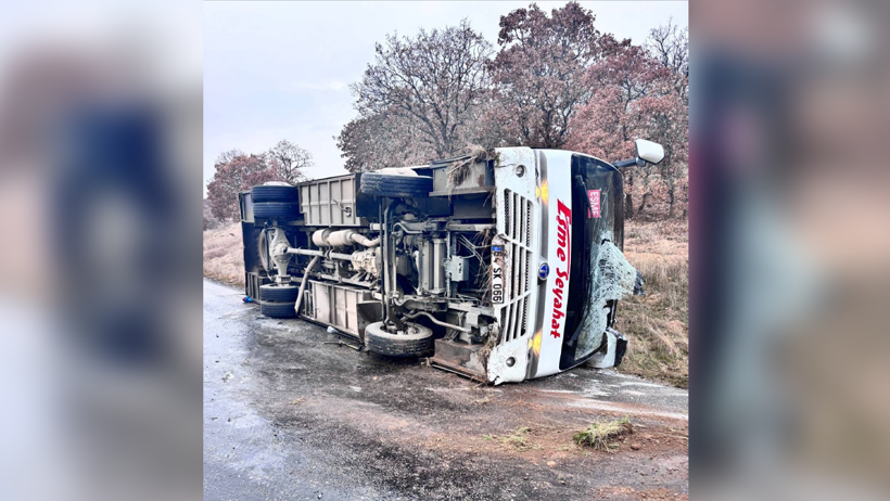 Uşak-Eşme arasında yolcu taşıyan S.K. (48) yönetimindeki 64 SK 066 plakalı midibüs, Akkeçili köyü yakınlarında sürücüsünün direksiyon hakimiyetini kaybetmesi sonucu devrildi.